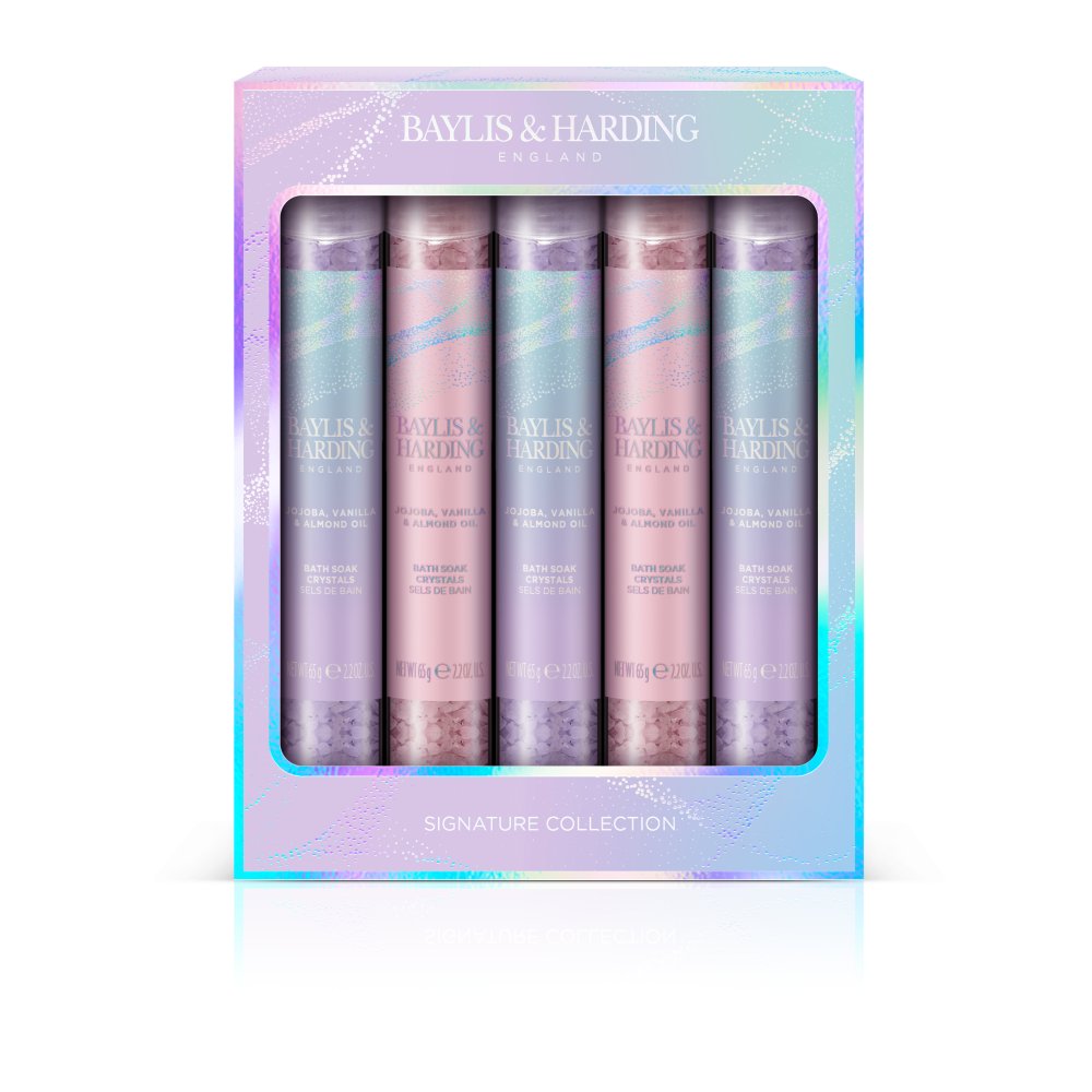 The Baylis & Harding Jojoba Dreamy Baths Salt Gift Set is a luxurious bath set designed to provide a relaxing and indulgent bathing experience. This gift set typically includes bath salts infused with the nourishing properties of jojoba oil, which helps to soften and hydrate the skin. The bath salts dissolve in warm water, releasing soothing minerals that relax the body while the calming scent of jojoba creates a serene and dreamy atmosphere.
