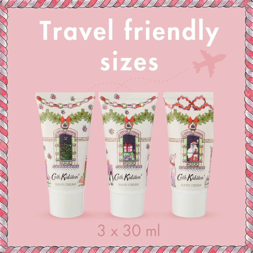 A jolly trio of Red Berry & Cedar pocket hand creams packed with ingredient heroes of emollient shea butter and moisture locking glycerin to care for hands on the go.