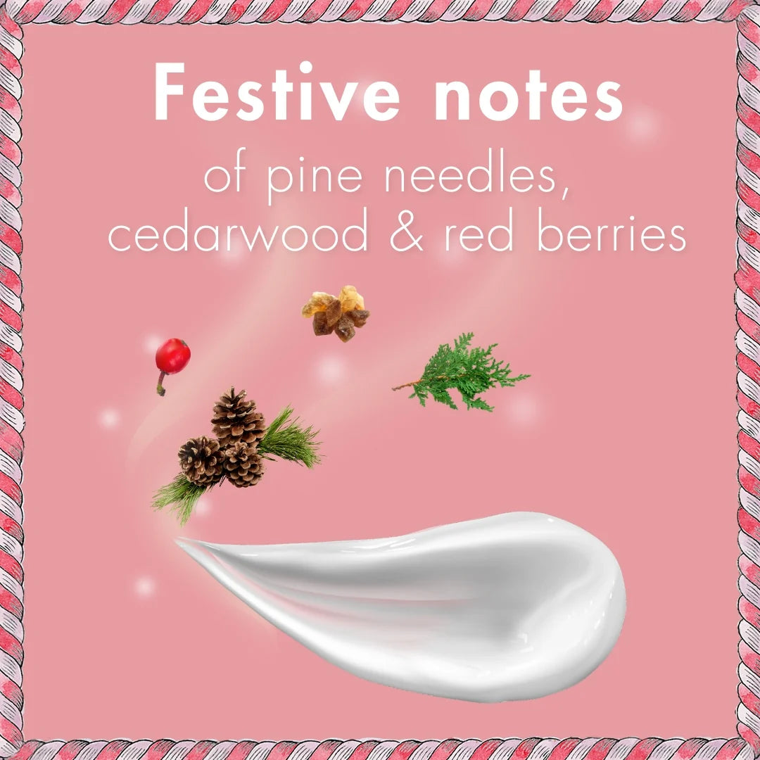 - Each one is scented with festive notes of pine needles, cedarwood, red berries and candied sugar and leaves skin delicately scented.