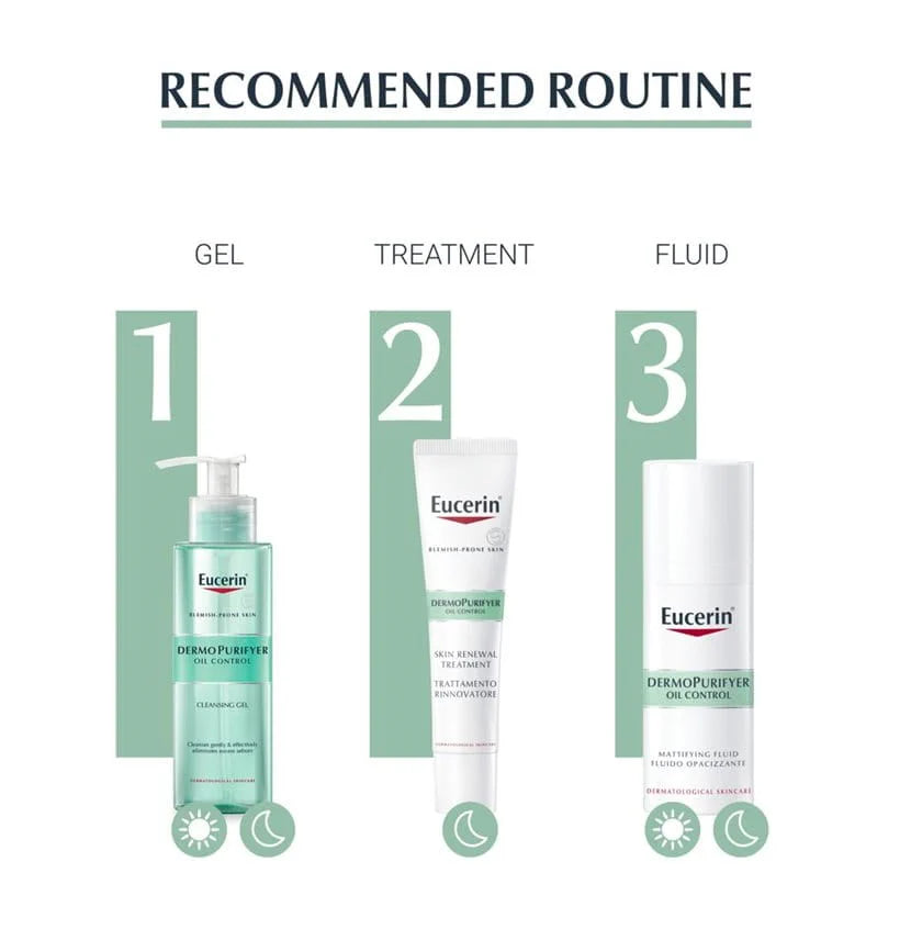 Use the fluid morning and/or evening Apply a chick-pea-sized amount (gently and evenly) to a thoroughly cleansed face For best results, we recommend you use this product in combination with cleansers and toners from the Eucerin DERMOPURE range Avoid contact with your eyes
