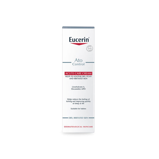 Eucerin AtoControl Acute Care Cream 100ml is a specialised formula designed to provide intensive care for areas of skin prone to flare-ups caused by atopic dermatitis (eczema). Suitable for both adults and children over 3 months, it helps soothe itching, calm irritation, and support the skin’s natural barrier.
