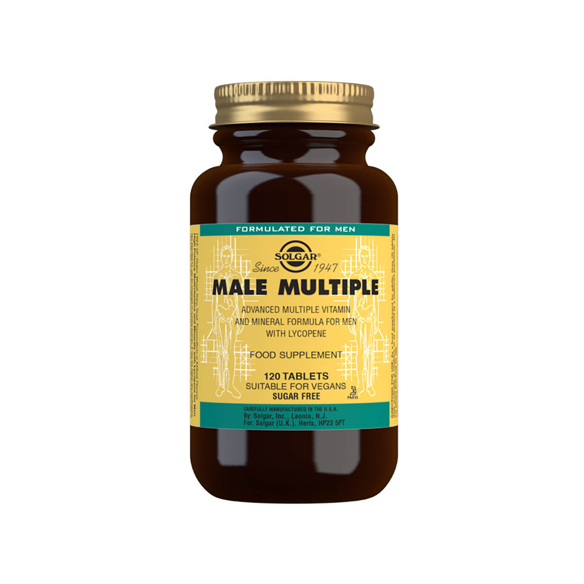 Solgar® Male Multiple is one of Solgar's premium-quality men's health products. This advanced multinutrient complex is a carefully crafted formulation tailored to the nutritional needs of men. Just three tablets a day provide an advanced multivitamin formula with 26 nutrients specifically formulated to provide nutritional support for men's busy lifestyles. Including phytochemicals, vitamins B6, B12, niacin and pantothenic acid, which contribute to normal energy-yielding metabolism and the reduction of tiredness and fatigue.