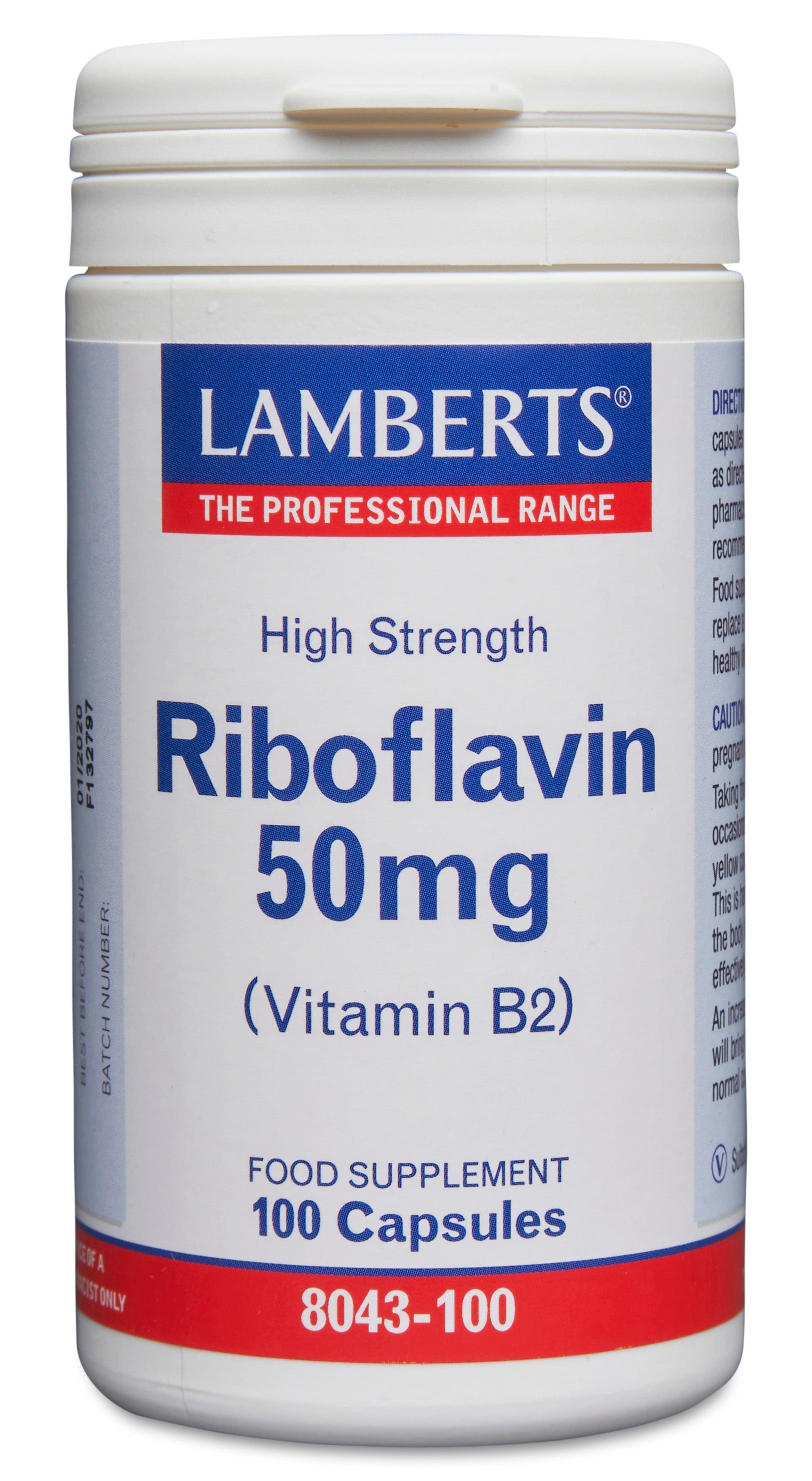 this is a high strength supplement of vitamin b2 which is also known as riboflavin and each capsule provides a full 50mg of riboflavin. as with all lamberts® supplements this product is manufactured in premises that operate to stringent pharmaceutical standards of gmp. riboflavin is a very important nutrient as it contributes to: the normal functioning of the nervous system. the maintenance of normal red blood cells. the maintenance of normal skin. the maintenance of normal vision. the reduction of tiredness and fatigue. daily intake: 1 to 2 capsules