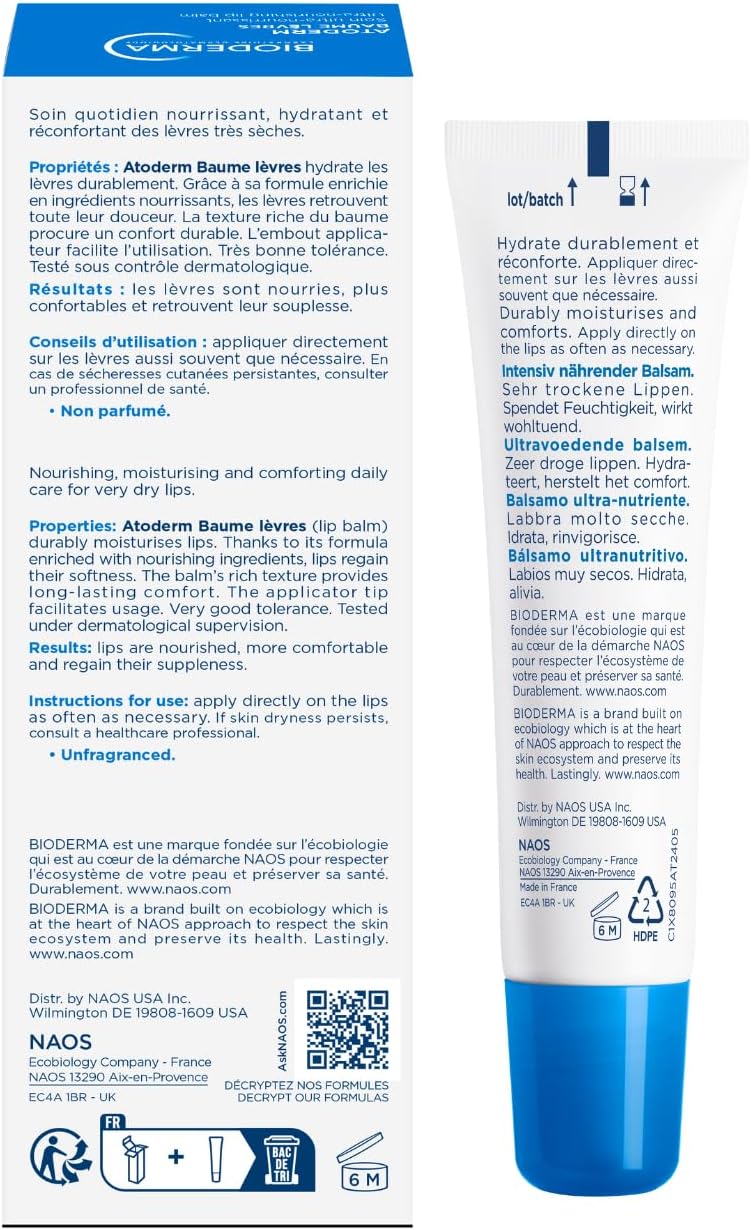 Soothe, repair and protect dry, chapped lips with Bioderma Atoderm Ultra Moisturising Lip Balm. Formulated with Bioderma’s dermatological expertise, this rich balm provides long-lasting comfort and hydration, restoring softness from the very first application.