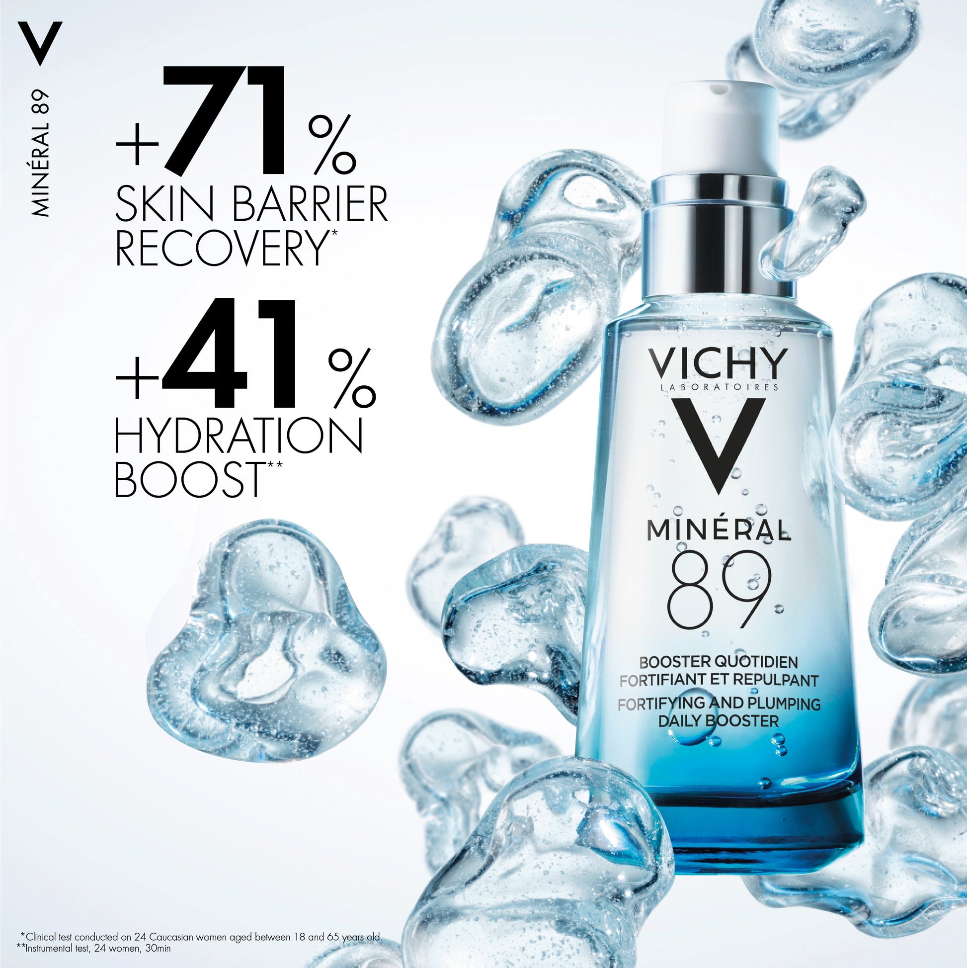 Overview: Vichy Mineral 89 Serum is a daily hydrating and fortifying booster that enhances the skin's barrier function, providing intense hydration and protection against external aggressors. Formulated with Vichy's highest concentration of Mineralizing Water and hyaluronic acid, this lightweight gel-serum is designed to plump, hydrate, and strengthen the skin, making it more resilient and radiant. Suitable for all skin types, including sensitive skin, it delivers a refreshing boost of hydration and vitality.