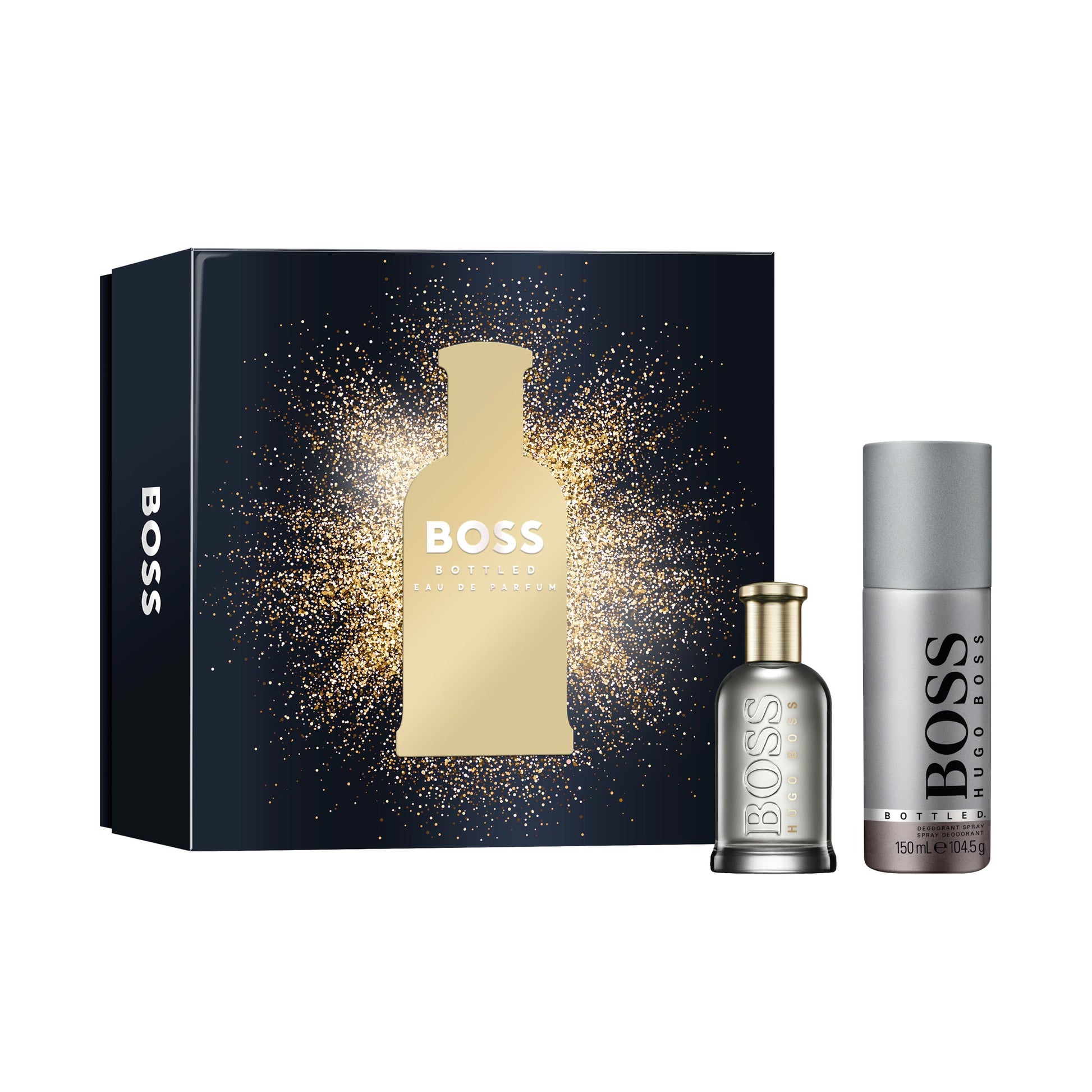 Give him a unique gift this Christmas season, with the irresistible BOSS Bottled Eau de Parfum giftset. Inspired by the new BOSS identity, this giftset is the ultimate gift for your loved ones. Created for driven, ambitious men ready to take on every challenge that comes their way, BOSS Bottled Eau de Parfum brings an intensity to the warmth and vibrancy of the timeless BOSS Bottled signature. Senses are awakened with a burst of apple and bergamot, contrasted with essence of black pepper. The spicy heart unfolds with warm and addictive cardamom and cinnamon oils. Exuding a powerful balance of strength and sophistication, base notes of dark vetiver and musk evolve through time, delivering a heady and smoky scent. Vibrant and sensual, this Eau de Parfum for men exudes sophistication while the BOSS Bottled Deodorant Spray cleanses and refreshes, leaving the skin lightly fragranced with the line's distinctive scent.