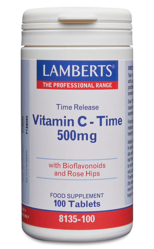 vitamin c is needed for a healthy immune system healthy bones teeth and gums as well as helping to maintain normal blood fat and cholesterol levels. our daily requirement for vitamin c is higher than any other water-soluble vitamin. ideally vitamin c needs to be taken in small amounts throughout the day and night because it is rapidly lost from the body. however this is not always convenient which is why lamberts® have formulated time release vitamin c tablets. these tablets are produced by a special process that retains the nutrient in micropellets allowing it to be released slowly after the tablet has been swallowed. this means that the absorption of vitamin c is a continuous process as the gradual release takes place over 6 to 8 hours. lamberts® time release vitamin c 500mg tablets also contain a relevant level of bioflavonoids because they are known to aid vitamin c absorption. bioflavonoids have also been demonstrated to have specific effects including a strengthening effect on the capillaries. a gradual release of vitamin c which replicates the natural process of food digestion a more stable level of vitamin c in the blood for a longer period a lower rate of excretion of vitamin c the beneficial effects of vitamin c available over a sustained period.
