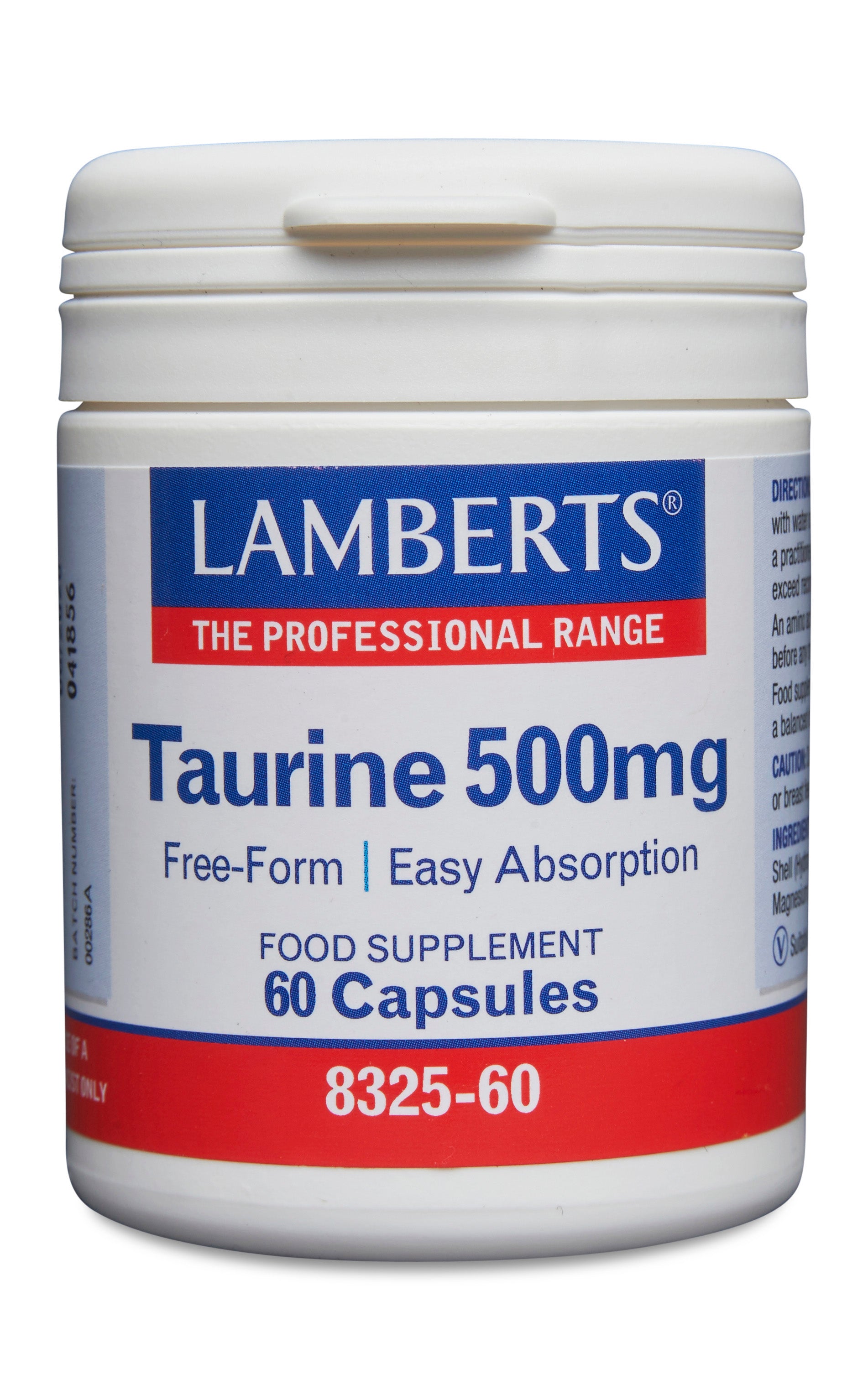 lamberts® taurine is a pure free-form amino acid that is ready to be absorbed by the body without needing to be broken down by digestive enzymes. each capsule provides a full 500mg of taurine. one capsule will double the typical daily intake of taurine from food and two capsules provides the same amount of taurine as found in popular energy drinks. this product is made in the uk to pharmaceutical gmp standards. daily intake: 1 to 2 capsules