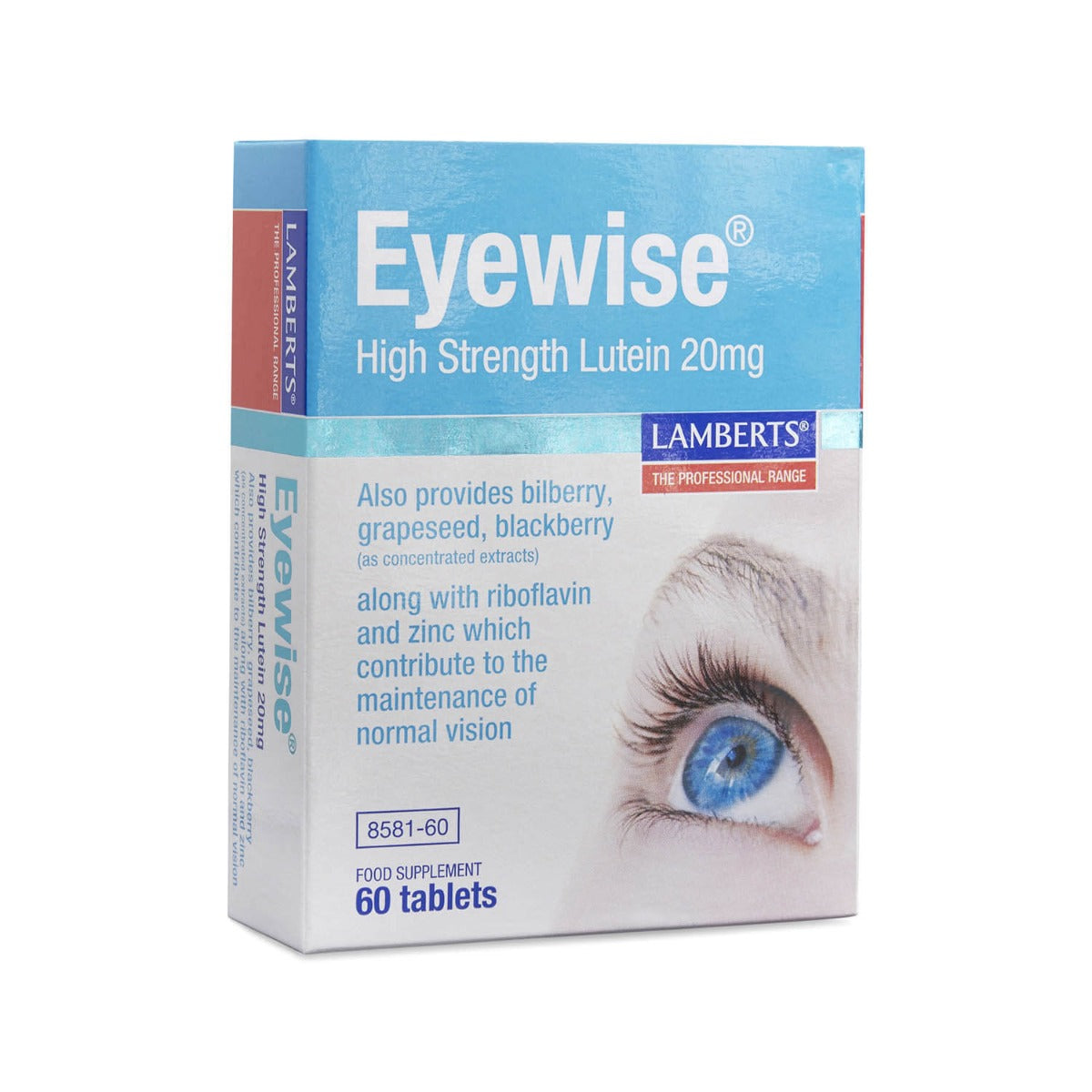 eyewise® provides a full 20mg of lutein (pure free-form) per tablet making our product one of the strongest available. it also provides bilberry blackberry and grapeseed all well known plant polyphenols as concentrated extracts. plus the mineral zinc and the b vitamin riboflavin both of which are known to contribute to the maintenance of normal vision and to the protection of cells from oxidative stress.lutein is a yellow carotenoid that is not made in the body and so it has to be obtained from leafy green vegetables in the diet. in plants lutein is produced to help protect the cell contents from damage by sunlight. our bodies are able to use lutein in the same way as it is deposited in the macula where it filters out the harmful wavelengths in sunlight that can damage the delicate light receptor cells of the macula. research has shown that eating diets that are low in lutein can result in diminished levels of lutein in the macula. to correct this you should try to include leafy green vegetables in your diet or failing this it is advisable to take a lutein supplement. daily intake: 1 tablet