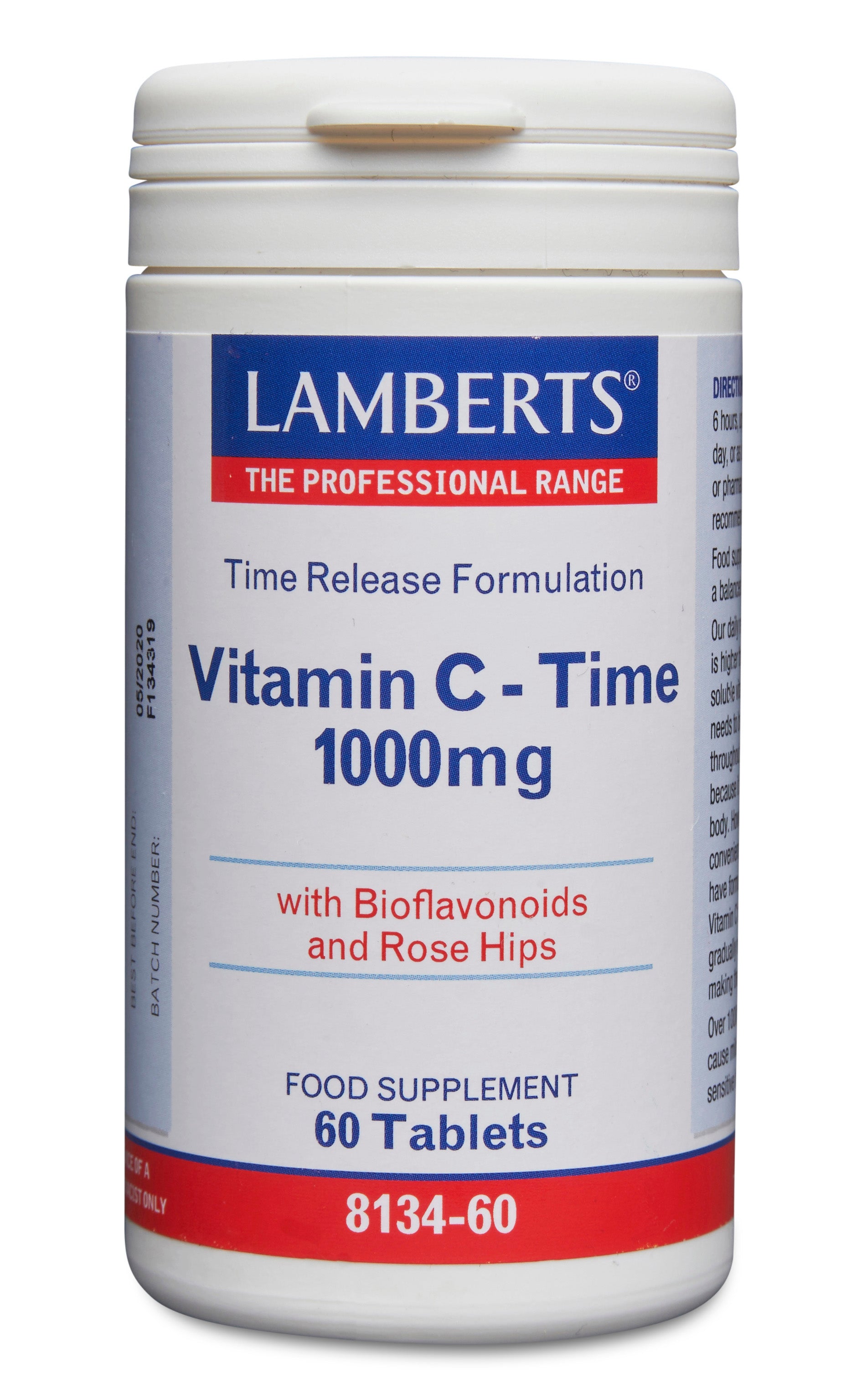 these tablets are specially formulated to release the vitamin c gradually over 6-8 hours after swallowing which means that the absorption of vitamin c into the bloodstream also occurs gradually. this is believed to create a more stable level of vitamin c in the blood for a longer period. lamberts® time release vitamin c 1000mg tablets also contain a relevant level of bioflavonoids the natural compounds that are often associated to vitamin c in fruits and vegetables. vitamin c contributes to normal collagen formation for the regular function of cartilage the tough tissue that lines the surfaces of joints. vitamin c also contributes to the normal function of the immune system and to the protection of cells from oxidative stress caused by 'free radicals' daily intake: 1 to 3 tablets