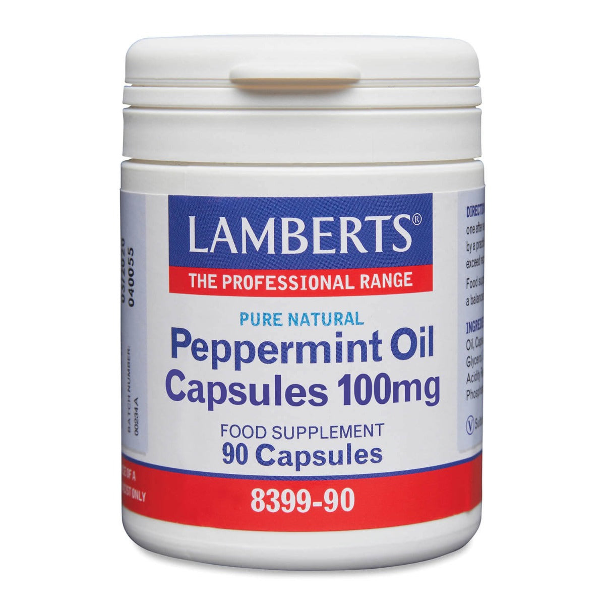 lamberts® peppermint oil capsules contain 100mg of pure natural peppermint oil distilled from mint leaves. the key active ingredients in mint are the volatile oils particularly menthol and in these capsules these volatile oils are preserved in a way that is not possible in mint sweets and mint teas. in fact the amount of mint in each capsule is up to 12 times stronger than even the hottest mint sweets. peppermint has a long tradition of use as a digestive aid and after swallowing one of these capsules you will feel a warm comfortable feeling after the capsule releases its contents. in some countries mint tea is regularly served after a meal and in the same way we recommend that one of these capsules is swallowed after each large meal.