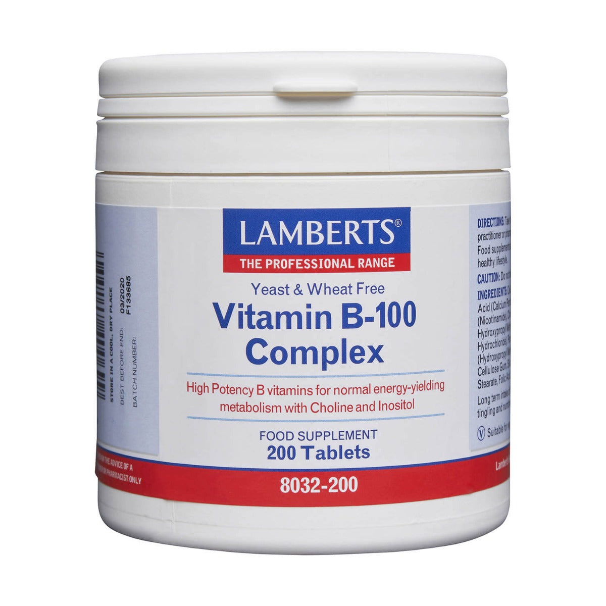 lamberts® vitamin b-100 complex is a high strength product that is useful in situations where someone requires a fast boost to their intake of b vitamins. in most situations this product should be used for short term supplementation typically two months after which time our b-50 complex will provide adequate levels of the b vitamins. several of the b vitamins are known to contribute to the normal functioning of the immune system and to normal psychological function. others are recognised as contributing to the reduction of tiredness and fatigue as well as the maintenance of normal skin. made in the uk and produced in premises that operate to stringent gmp pharmaceutical standards. extra high strength b vitamin complex. one-a-day short term use. one-a-day taste free coated tablets