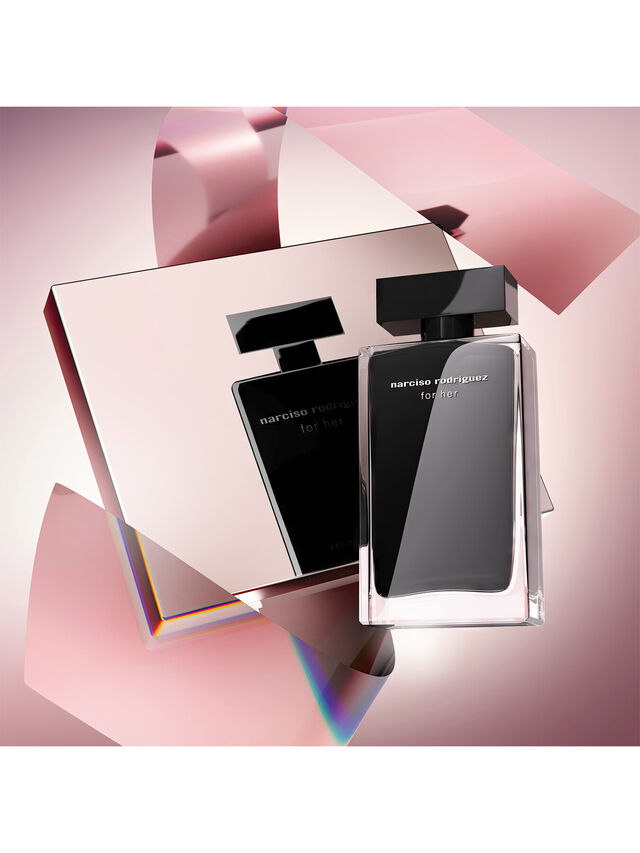 Narciso Rodriguez Illuminates the festive season with an extraordinary gift. A fascinating new material with an iridescent metallic sheen illuminates our special holidays season sets of women’s perfumes for the occasion. Let yourself be wowed by the shimmering brilliance of our new gift sets. Make this Christmas extraordinary with Narciso Rodriguez. Narciso Rodriguez for her eau de toilette is structured around three olfactory variations. Warm floral notes reveal the heart of musc with accents refreshed by orange blossom and osmanthus. The amber light notes transport musk to a more abstract register, where its softness becomes enveloping. Amber and vanilla lend a creamy richness to the radiant musk core. Woody notes help the sensory dimension of musk to fully unfold. Vetiver becomes more feminine, and the sensuality of the woody notes is heightened for a long lasting and addictive sillage. This glowing gift set includes: - 1 For Her eau de toilette 50ml - 1 For Her eau de toilette body lotion 50ml - 1 For Her shower gel 50ml Give the extraordinary gift of a Narciso Rodriguez fragrance this Christmas. Less is more with the 100% cardboard box. Narciso Rodriguez has revamped the design of its packaging to reduce its environmental impact. We encourage you to give a second life to your gift boxes by reusing or recycling them.