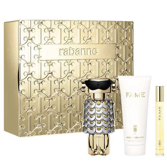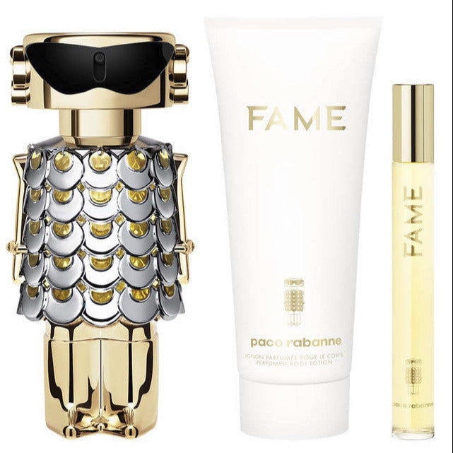 Introducing the Paco Rabanne Fame Gift Set - an opulent ensemble that encapsulates the essence of luxury and allure. This extraordinary collection is designed to immerse you or a loved one in the world of Paco Rabanne's iconic fragrances.