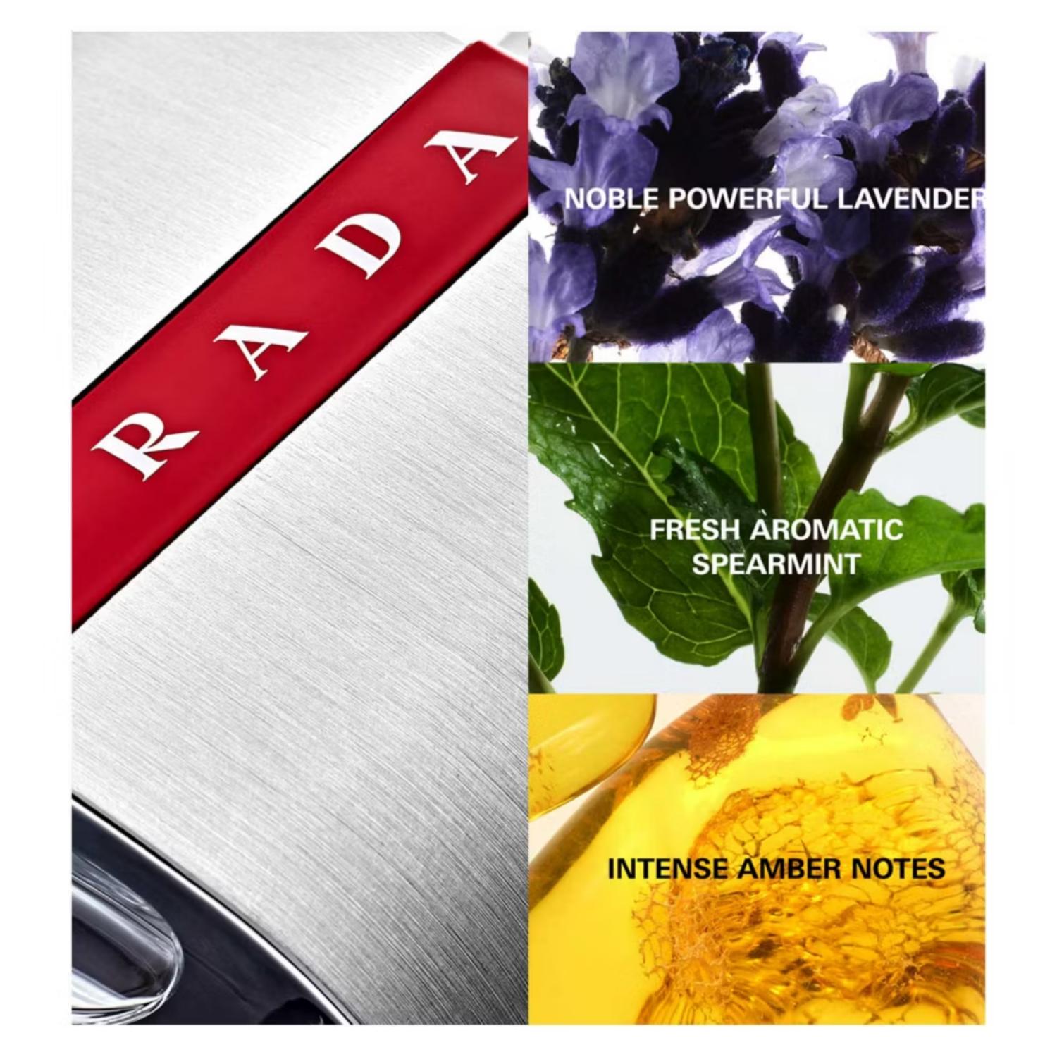 Prada Luna Rossa Eau de Toilette is a fresh, invigorating fragrance inspired by the world of competitive sailing. It opens with crisp citrus and aromatic notes that give an immediate sense of energy and movement. At its heart, smooth lavender and sage bring a refined balance of cool elegance and herbal freshness. The base is clean and modern, with ambrette and subtle woody accords that leave a lasting impression of strength and sophistication.