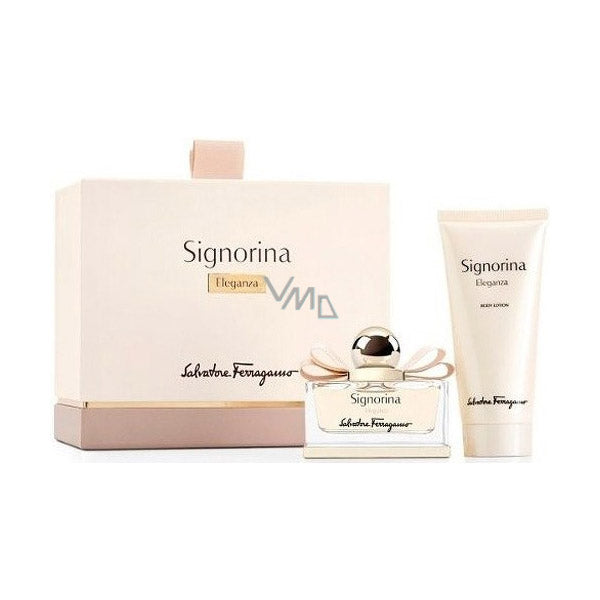 Housed in a sleek and stylish gift box adorned with Salvatore Ferragamo's iconic logo, this set is the perfect gift for any occasion. Whether you're treating yourself or someone special, the Salvatore Ferragamo Signorina Eleganza Gift Set is sure to impress and delight.