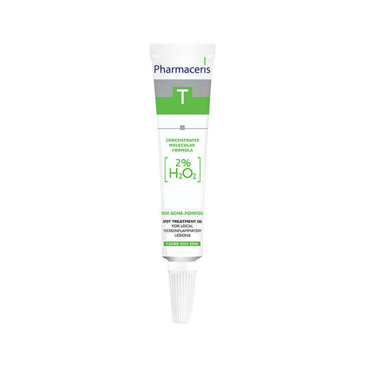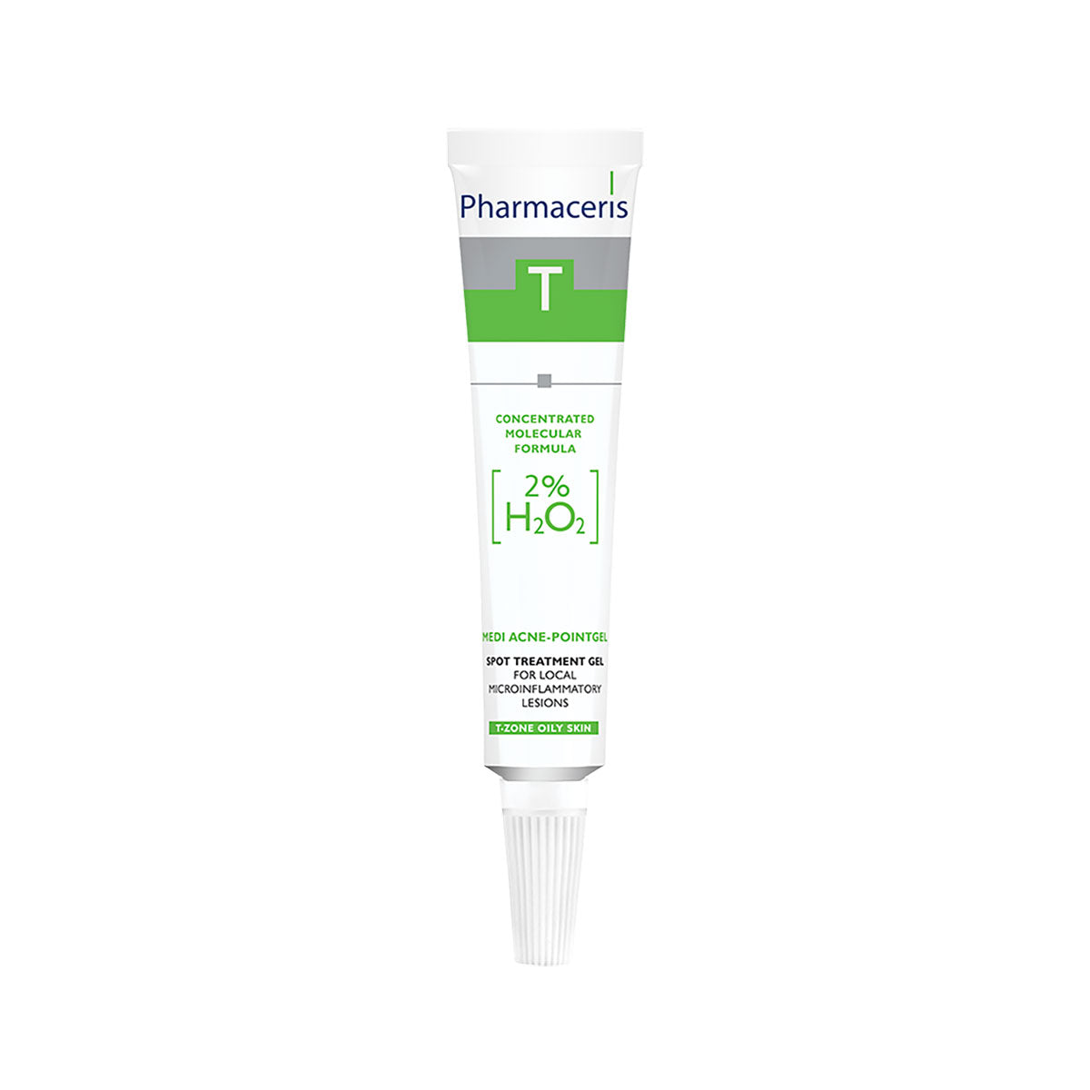 The product contains a concentrated 2% H₂O₂ formula and salicylic acid. It demonstrates an immediate targeted molecular effect on acne lesions.