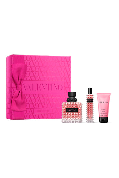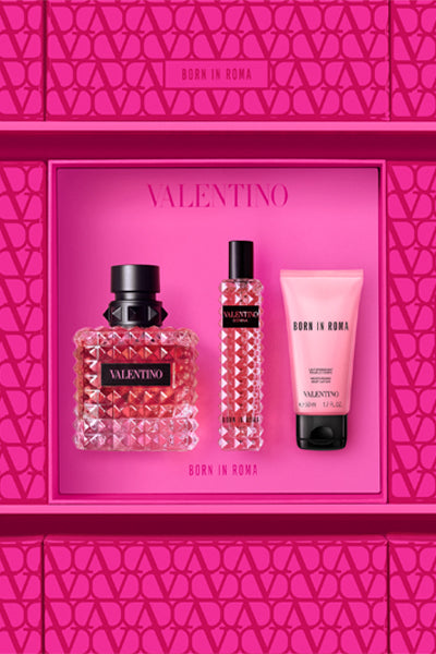 The Valentino Born in Roma Donna Gift Set is a luxurious and elegant collection designed for the modern woman who embodies confidence, sophistication, and a touch of rebellious spirit. This set includes a 100ml bottle of Born in Roma Donna Eau de Parfum, a 50ml Body Lotion, and a 15ml Travel Spray, offering a complete fragrance experience perfect for both daily use and travel.