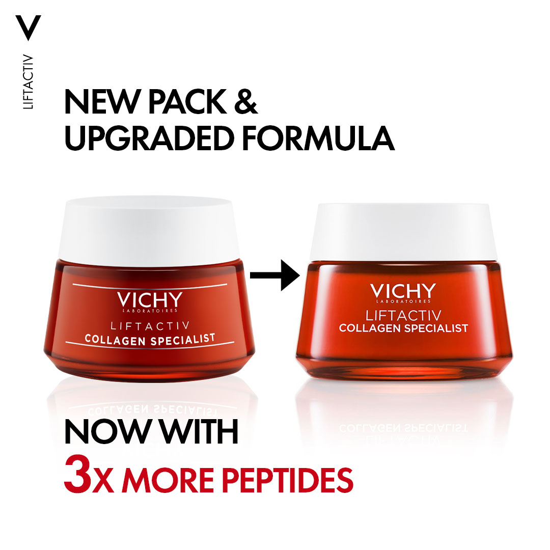 Overview: Vichy LiftActiv Collagen Specialist is a powerful anti-aging moisturizer designed to combat the visible signs of collagen loss in the skin. Formulated with advanced dermatological ingredients, this cream helps to improve skin firmness, reduce wrinkles, and even out skin tone, providing a more youthful and radiant appearance. Suitable for all skin types, including sensitive skin, it delivers long-lasting hydration and targeted anti-aging benefits.